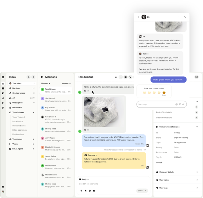 The Intercom Customer Service Suite combines the #1 AI Agent for customer support with a next-gen Helpdesk—built on a single platform that maximizes team efficiency and delivers superior service.